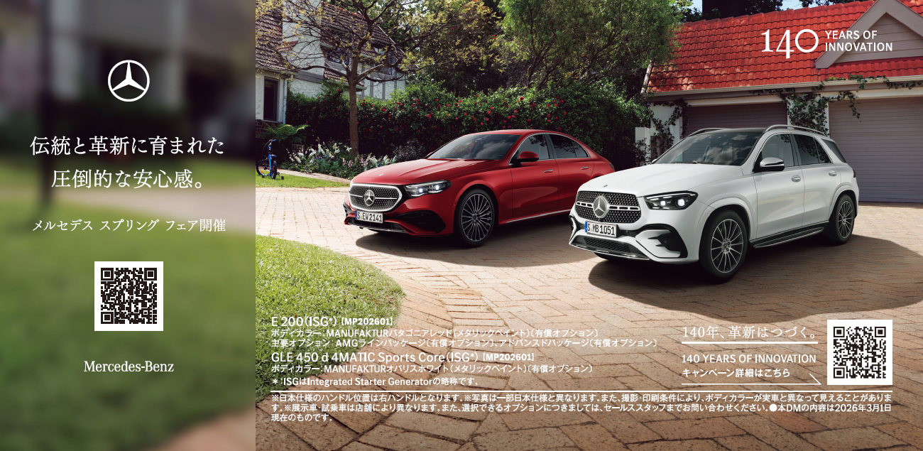 メルセデス・ベンツ正規販売店にて「メルセデス スプリング フェア」を開催いたします。